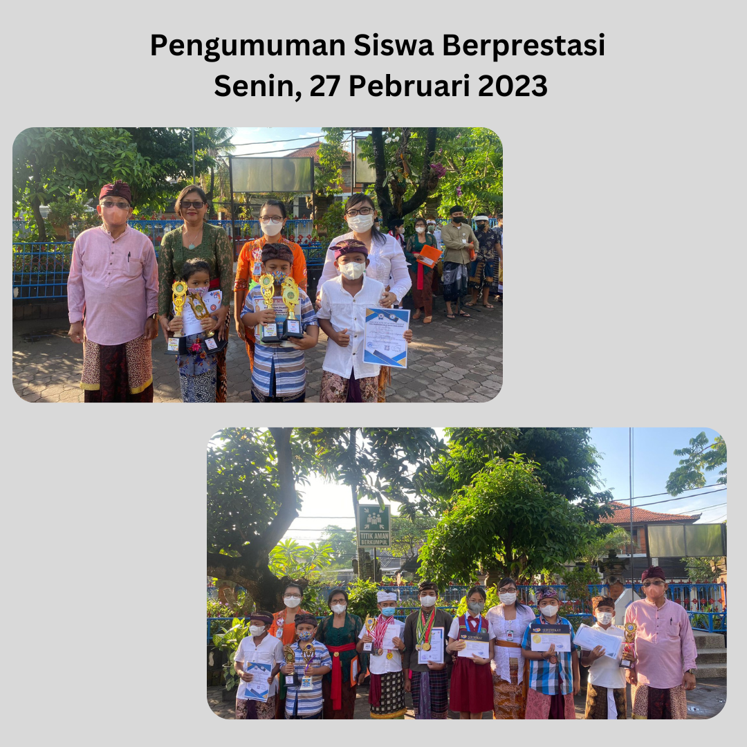 Senin, 27 Pebruari 2023. Setelah melaksanaan upacara bendera, maka SD Saraswati 5 Denpasar melaksanakan agenda Pengumuman Siswa Berprestasi.Kegiatan ini dilaksanakan dengan tujuan memberi motivasi kepada siswa-siswa SD Saraswati 5 Denpasar agar terus meningkatkan prestasinya dalam bidang akademik maupun non akademik. Prestasi yang dimumkan hari ini meliputi Renan...